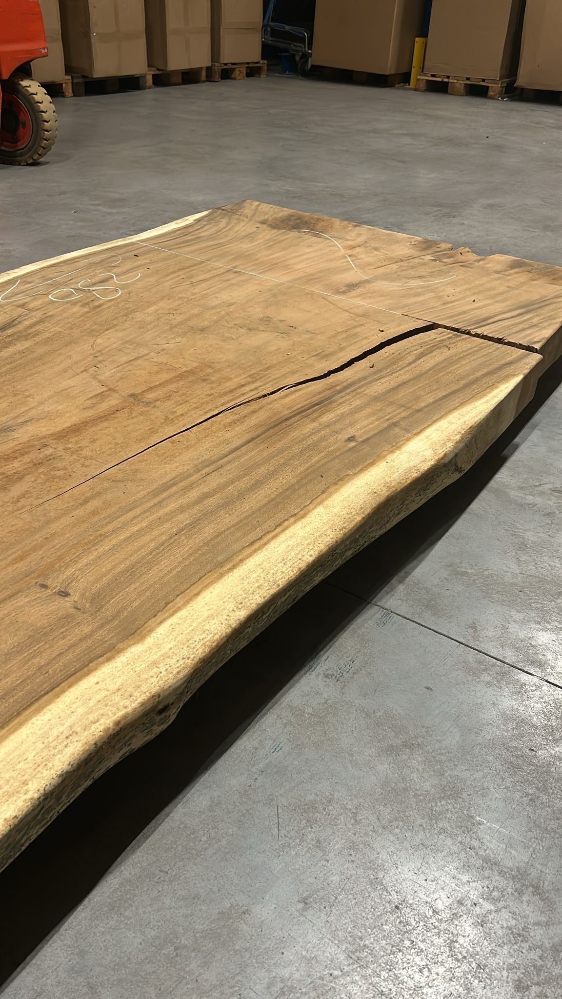 Dit Upgradelivin boomstam tafelblad is volledig massief en vervaardigd uit Raintree hout, ook wel Suar hout genoemd. Het blad is uniek en krijgt karakter door de vorm en kleurvariatie tussen de binnen- en buitenkant van het tafelblad.